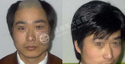 治疗前:32岁的罗先生,从一年前就发现自己有斑秃,斑秃的面积不大,在这一年里前后也有就诊治疗过不下两次,但是治疗的效果很不好!