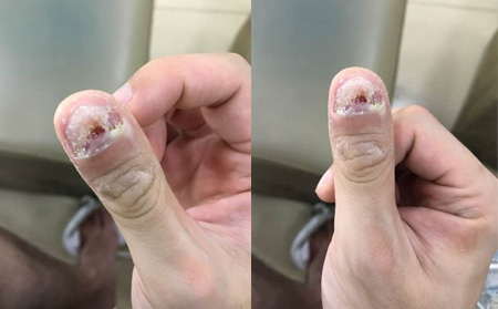 阿凯出生在一个偏远的小山村,那时的他根本不懂得注意指甲卫生。不知从什么时候开始,阿凯发现自己的指甲就变得非常难看,开始以为没什么大不了的。但是几年以来,难看的灰指甲不仅没有消失,而且其他健康的指甲也染上了。去医院检查才知道是灰指甲。从那以后,阿凯的工作就增添了不少苦恼,难看的灰指甲让他在公众场合觉得很不好意思,不敢随意跟客人握手,怕客户看到会嫌弃他。