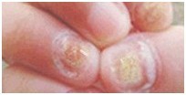 深层真菌不再繁殖,甲沟红肿消退,病甲变脆,甲下增厚的病变组织萎缩、脱落,病情不再恶化,手足癣逐渐脱屑。