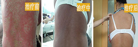 【治疗效果】成都军大临床推广医生组,对在本院采用中西医结合治疗牛皮癣的100例患者进行跟踪调查,并依照国际牛皮癣评分表来测定,发现治疗后的 1个疗程,红色斑块消失或明显减少。此外,第2个疗程皮肤鳞屑明显减少,第3个疗程皮肤恢复正常。