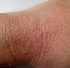 1. 过敏性皮炎:一旦产生皮疹,刚开始表现为针头至粟米粒大小,密集的红斑、丘疹和丘疱疹,常对称分布,有瘙痒或者有灼热感。伴有少许柔软而细薄鳞屑,皮肤皱纹清楚,局部温度稍低。因反复搔抓可出现湿疹样皮疹,以丘疹为主,水疱、糜烂或渗出较少。
