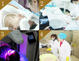 第二步:中医中药调理机体,平衡调节皮肤微循环。通过初步处理后,再根据痘痘严重程度采用不同的中药配制成面膜,进行深层渗透治疗,达到温经活血,促进皮肤生理循环,清除毒素等作用,使不同程度的青春痘得到进一步的治疗,抑制皮脂过度分泌。