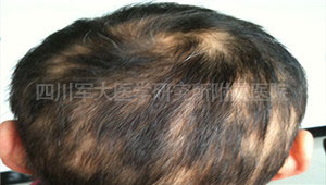 斑秃患者王女士来成都成都军大医院初诊时的照片(头顶部)